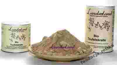 Skład: 100% proszek z diabelskiego szpona (Harpagophytum procumbens) Analiza: Białko 3,67%, Tłuszcz 0,5%, Włókno 5,1%, Popiół 5,5% , Grubość 1,45%