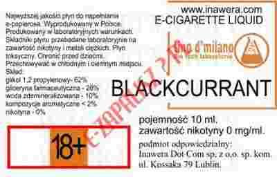 E-liquid o smaku czarnej porzeczki. Producent: Inawera, seria: tino d'milano.