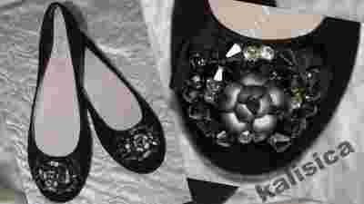 Czarne eleganckie baleriny z różą 37, 41