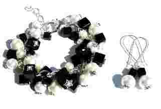 Czarno-Biała Bransoletka Charms plus Kolczyki.