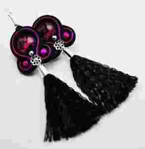 Czarno- różowe Kolczyki Sutasz Kaboszon Crackle