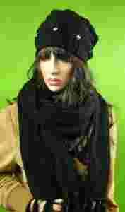 CZARNY KOMPL: CZAPKA SMERFETKA + SZAL + RĘKAWICZKI