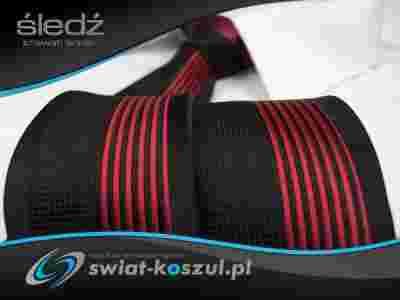 Czarny KRAWAT MĘSKI śledź w malinowe paski K0