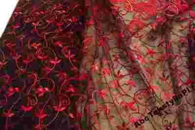 Czarny tiul w czerwono-złoty haft. P79