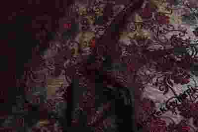 Czarny tiul z flokiem pokryty bordowym brokatem