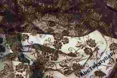 Czarny tiul z flokiem pokryty złotym brokatem