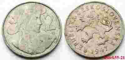 CZECHOSŁOWACJA 2 KORONY 1947 POSTAĆ