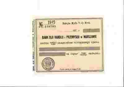 Czek Banku dla Handlu i Przemysłu - lata 20-te
