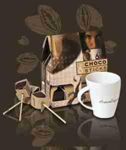 Jeżeli wydaje Ci się, że już rozgryzłeś tajemnicę czekoladowych doznań, sięgnij po ChocoSticks. Odkryjesz czekoladę na nowo w jej najgorętszym wydaniu. ChocoSticks to czekoladowe sześciany umieszczone na poręcznych patyczkach. Gorąca czekolada w formie ChocoSticks dostępna jest w czterech smakach: czekolady ciemnej, mlecznej, orzechowej i pomarańczowej z dodatkiem likieru cointreau.