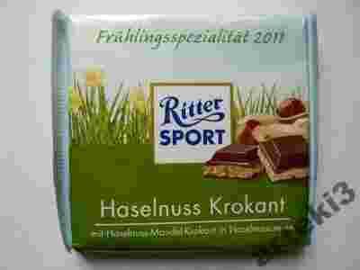 Ritter Sport Haselnuss Krokant - Czekolada pełnomleczna nadziewana kremem z orzechów laskowych,kawałkami orzechów laskowych,krokantem z migdałów i chrupkami ryżowymi