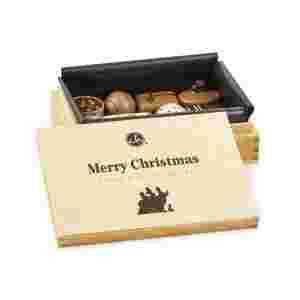 Drewniana skrzyneczka, wykonana z lekkiego drewna ze świąteczną grafiką skrywa dwanaście ręcznie robionych pralinek. Czekoladki zostały wykonane wg tradycyjnych receptur przy użyciu najwyższej jakości składników bez konserwantów. Każda pralinka to małe dzieło sztuki. Przyjemność degustacji gwarantowana.