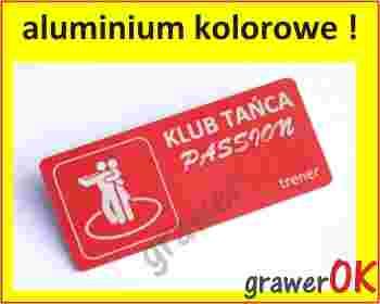 bardzo trwałego i eleganckiego identyfikatora z kolorowego aluminium anodowanego o grubości 1 mm,