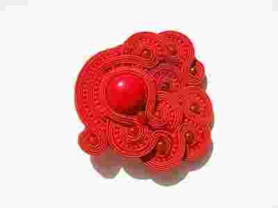 Czerwona broszka sutasz sutaż soutache