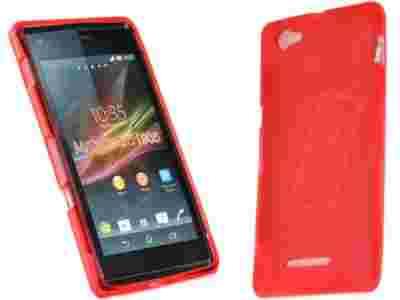 Czerwone elastyczne etui Gel Sony Xperia M + folia