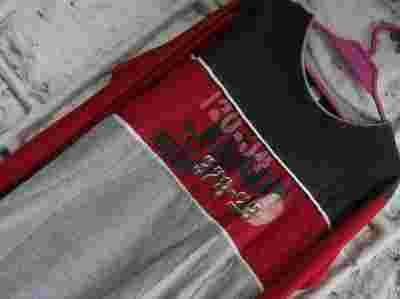 CZERWONO-SZARY T-SHIRT Z NADRUKIEM 146/152 CM