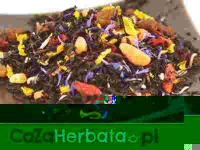 Herbata Czerwony Diament to czarna cejlońska herbata wzbogacona czerwonymi owocami rokitnika i jagoda goji oraz cukrem witaminowym, płatkami bławatka i słonecznika. Owoce rokitnika oraz jagody goji to prawdziwe bomby witaminowe. Herbata bogata jest w witaminę C, E, F, K, P, kwas foliowy, prowitaminę A i D oraz żelazo.