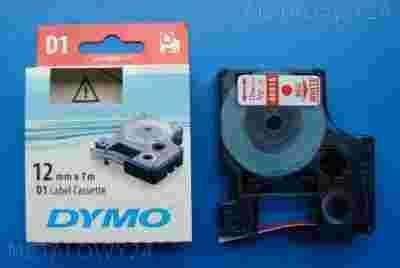 Taśma biała z czerwonym tekstem standardowa D1 12mm/7m