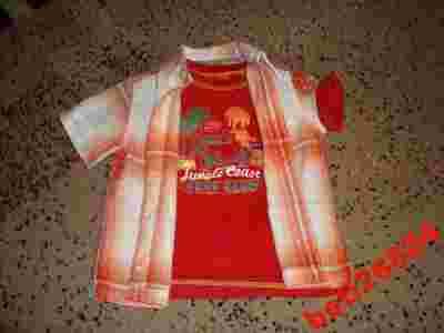 Czerwony t-shirt bluzka koszula w kratę 98-104cm