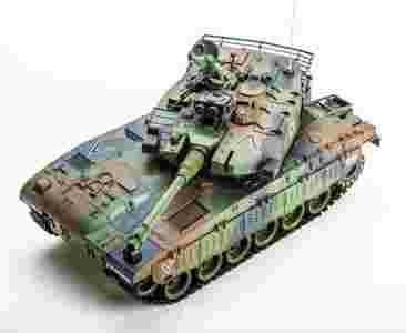 Solidnie wykonany czołg ze starannym odwzorowaniem każdego detalu przykuwa uwagę każdego. Wyposażony został w masywne gąsienice co zdecydowanie ułatwia poruszanie się w każdym terenie , podnoszoną lufę sterowaną pilotem. Jako amunicje wykorzystywane są kulki , które wylatują z lufy po jednoczesny wciśnieciu obu guzików FIRE na pilocie.