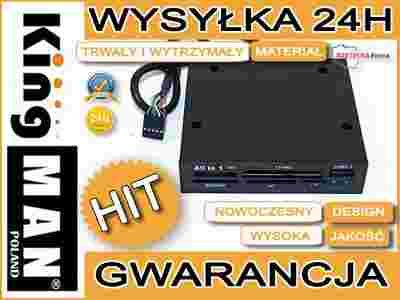 Jest to bardzo szybki-pracujący na USB 2.0, wewnętrzny czytnik kart pamięci wraz z Portem USB 2.0. Czytnik obsługuje wszystkie dostępne na rynku karty pamięci. Nie zastąpiony w każdym komputerze. Czytnik w rozmiarze 3,5" czyli do montażu w zatokę na stację dyskietek FDD. Oczywiście fabrycznie nowy, nigdy nie używany w fabrycznym kartonie. W zestawie: czytnik, kabel do podłączenia do płyty głównej 8pin(USB), śrubki montażowe.