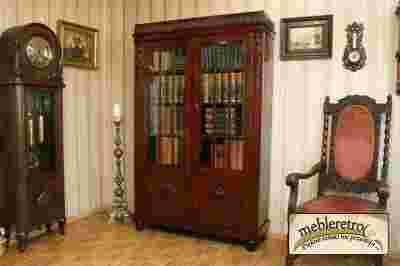 Biblioteka posiada ciekawą formę z cechami charakterystycznymi dla tego okresu - na meblu widoczne są liczne rzeźbione ornamenty, dzięki którym mebelek prezentuje się niezwykle bogato. Ponadto witryna posiada oryginalne, kompletne okucia czy fazowane kryształowe szybki.
