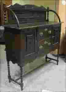 Dębowa komoda we flamandzkim stylu z przełomu XIX/XXw., bryła mebla wsparta na delikatnych toczonych nogach. Mebel okraszany delikatną snycerką, na blacie żłobiony rowek służący do ekspozycji porcelany.
