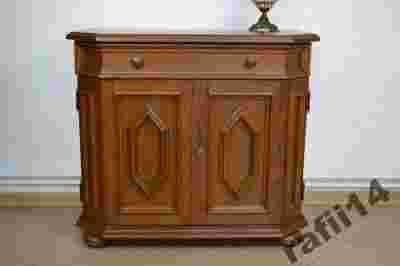 Szafka została bardzo solidnie wykonana, posiada normalne ślady użytkowania nie wymaga żadnej renowacji – można ją używać w takim stanie, w jakim się obecnie znajduje jeszcze przez długie lata.