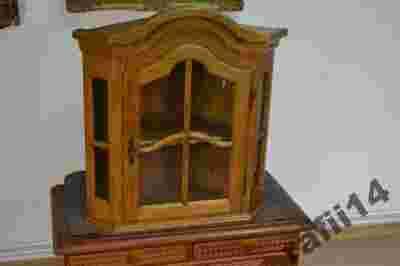 Witrynka jest bardzo solidnie wykonana z drewna dębowego, boki w wewnątrz fornirowane, nie wymaga żadnej renowacji – można ją używać w takim stanie, w jakim się obecnie znajduje jeszcze przez długie lata.
