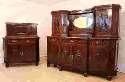 Przedmiotem aukcji jest wyjątkowy komplet mebli z początku XXw. W skład, którego wchodzi potężny kredens oraz pomocnik.