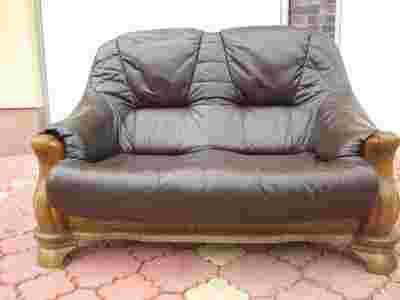 Dębowy skórzany 3+2+1.Skóra nat.Ze skóry.Rzezby