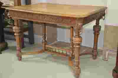 Dębowy stół z lwami rzeźbiony eklektyk