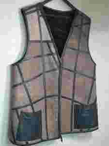 Długa kamizelka skórzana szyta z kawałków
