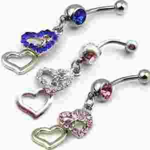 DŁUGI KOLCZYK DO PĘPKA CYRKONIE SERCE KWIATEK HIT