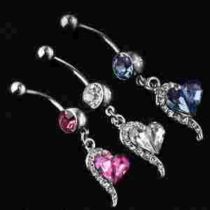 DŁUGI KOLCZYK DO PĘPKA PIERCING SERDUSZKA KWIATEK