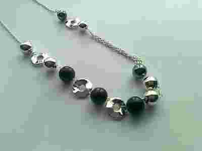 DŁUGI NASZYJNIK , PIĘKNE KULE SREBRNE , CZARNE