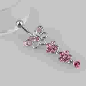 DŁUGI WISZĄCY KOLCZYK DO PĘPKA MOTYLE KWIATEK HIT
