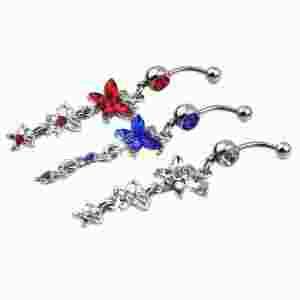 DŁUGI WISZĄCY KOLCZYK DO PĘPKA MOTYLEK KWIATEK HIT