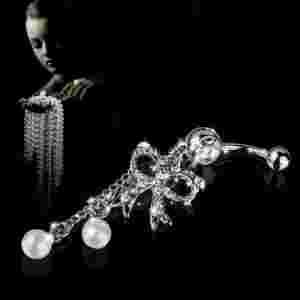 DŁUGI WISZĄCY KOLCZYK DO PĘPKA PIERCING KOKARDKA