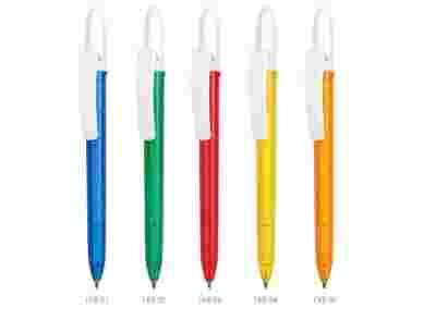 biały pełny klip, kolorowy transparentny korpus.