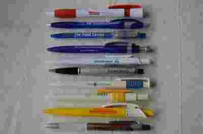10 długopisów firmowych, większość (np. 8-9 na 10) nieużywanych, piszących, nowych. Pochodzą z dawno zlikwidowanej kolekcji ponad 1.000 długopisów.