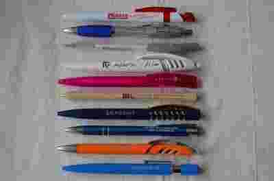 10 długopisów firmowych, większość (np. 8-9 na 10) nieużywanych, piszących, nowych. Pochodzą z dawno zlikwidowanej kolekcji ponad 1.000 długopisów.