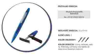 Niepowtarzalne połączenie długopisu z pieczątką. Poręczna pieczątka w lekkiej oprawie długopisu. Niezwykle funkcjonalne rozwiązanie podczas spotkań, konferencji, targów, a także w codziennej pracy. Zakrętka wyposażona w element magnetyczny ułatwia zamykanie chroniąc przed zagubieniem. Długopis z pieczątką występuje w kilku efektownych kolorach: niebieskim, złotym, srebrnym i czarnym.