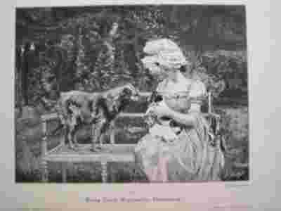 DAMA KOBIETA PSY PIES PARK MODA drzeworyt 1894 r.