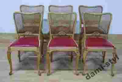 DAMI - 6 pięknych krzeseł Chippendale z rafią