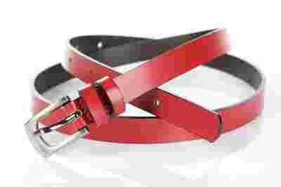 DAMSKI SKORZANY WASKI PASEK 100% SKORA CZERWONY