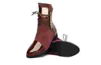 Damskie buty wykonane z skóry zamszowej z dodatkami skóry lakierowanej, bardzo wygodne.