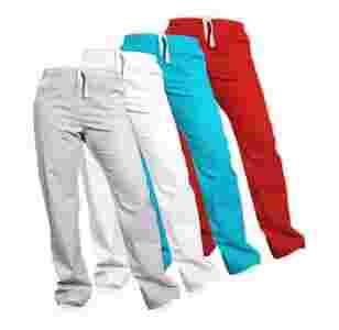 Damskie spodnie z kieszeniami, krój prosty, klasyczny, bardzo ładnie prezentują się na sylwetce. Z tyłu w pasie wszyta gumka, z przodu możliwość regulacji za pomocą wiązanych troczków. Kolor biały, pomarańczowy, turkusowy, lub czarny.