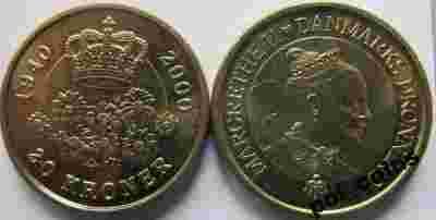 Dania 20 kroner 2000 60 urodziny królowej UNC