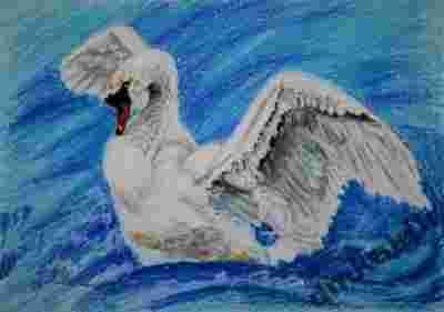 Danuta Jaskólska - Łabądź pastele olejne 34,5x24,5