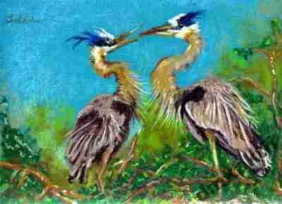 Danuta Jaskólska - Czaple - pastele olejne 32x22,5